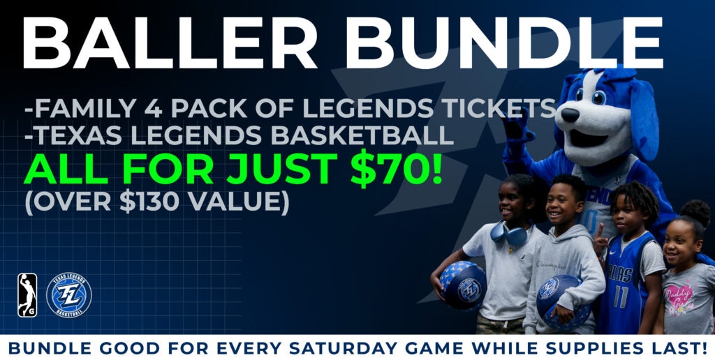 Maximize your weekend fun with the Legends Baller Bundle! This package gives you a Family 4-Pack of tickets and includes an official Legends Basketball—all for just $70! (over $130 value). It's the best value in town for a Saturday night of professional basketball. Available only while supplies last for Saturday games!