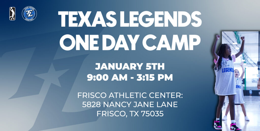 Join us for an extravaganza of exciting basketball action at the coolest youth basketball camp here in Frisco! Your child will learn a variety of skills and drills from the Texas Legends' star-studded coaching staff including visits from celebrity guests and complimentary camp gifts. The sessions are designed for boys and girls ages 6-14 who are looking to improve their game, compete in fun camp contests, and interact with the most fan-friendly team in DFW--the Texas Legends.