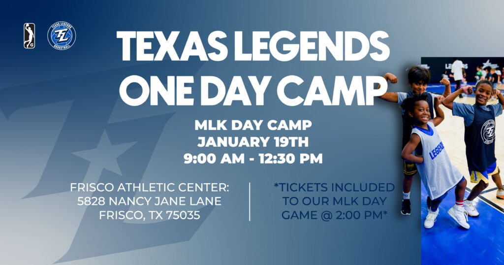 Looking for the perfect way to keep the kids active and entertained while school is out? Join us for our MLK Day One-Day Camp on Monday, January 19th! Boys and girls (ages 6-14) will hit the court for a high-energy morning of skills and drills—but the fun doesn’t stop there. The Best Part? Every camper and their family will receive complimentary tickets to our annual MLK Day Game immediately following the camp at 2:00 PM! Train like a pro in the morning, then cheer on the Legends as a family in the afternoon.